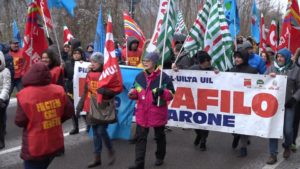 Sindacati e lavoratori uniti per manifestare contro gli esuberi annunciati.